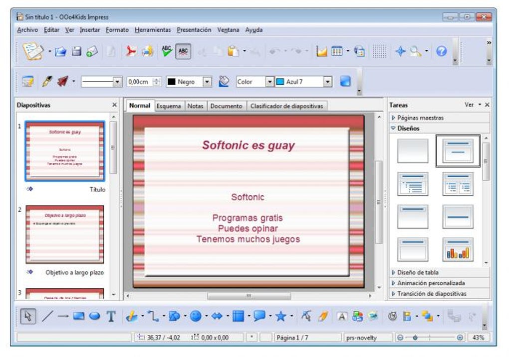OOo4Kids está formado por procesador de texto, hoja de cálculo, presentaciones y herramienta de dibujo.